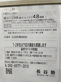 中1・2年生は、1,2学期の復習をウインターワーク使って徹底的にします。その理由は、冬休み明けの1月9日にテストがあるからです。